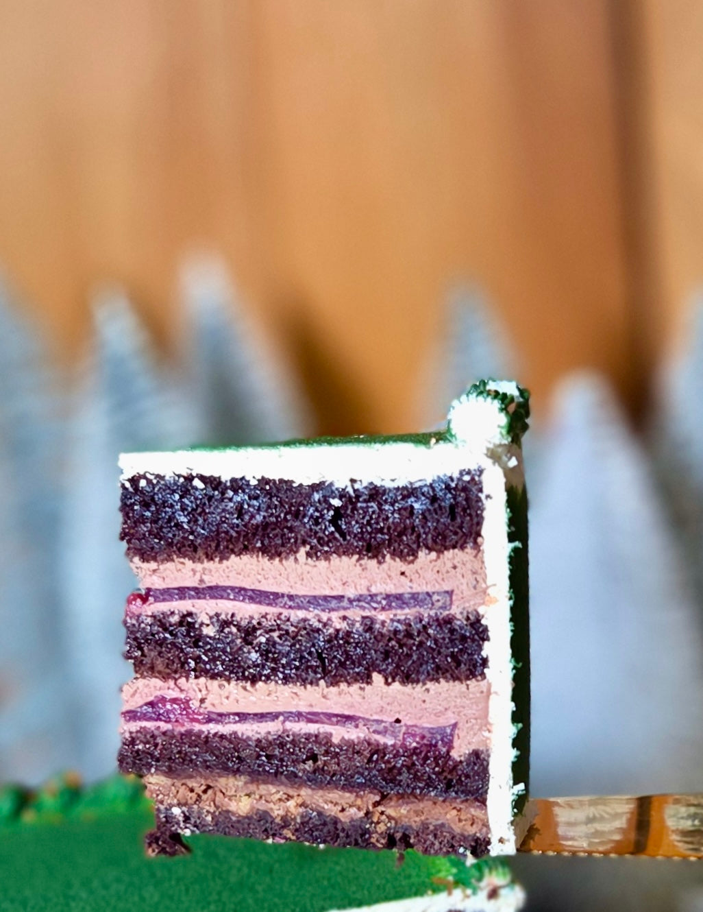 Šviesus biskvitas su aguonomis, 100 proc. juodųjų serbentų tyrės ir Philadelphia kreminio sūrio sluoksnis, rūgštus miško uogų traškutis.